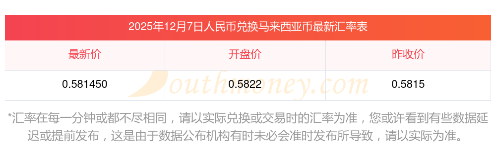 今日匯率:2025年12月7日人民幣兌馬來(lái)西亞幣匯價(jià)一覽