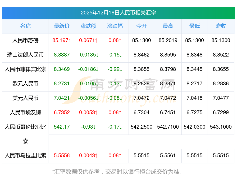 2025年12月16日人民幣相關(guān)匯率查詢