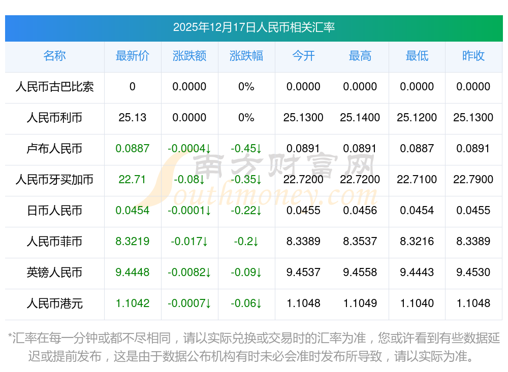 2025年12月17日人民幣兌換英鎊最新匯率:0.106050,今開(kāi):0.1058,昨收:0.1058,最高:0.1061,最低:0.1058。