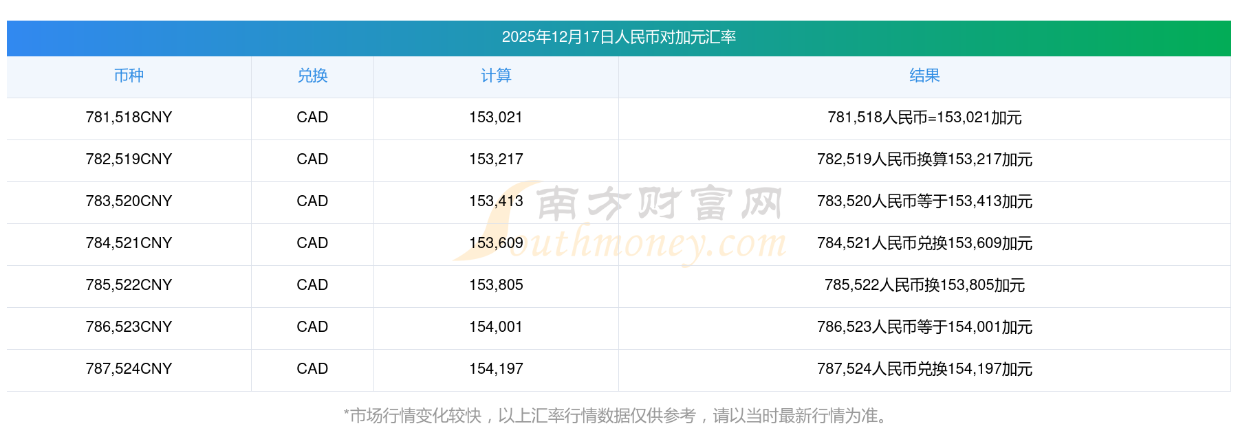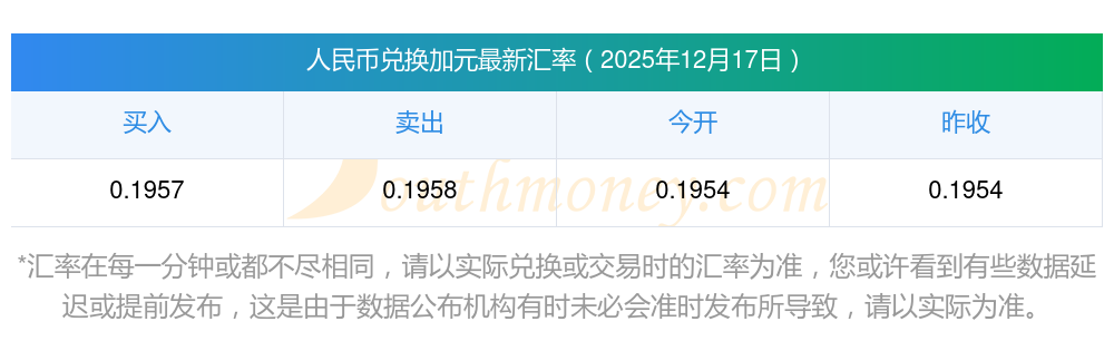 匯價(jià)查詢(xún):2025年12月17日40人民幣兌加元匯價(jià)一覽