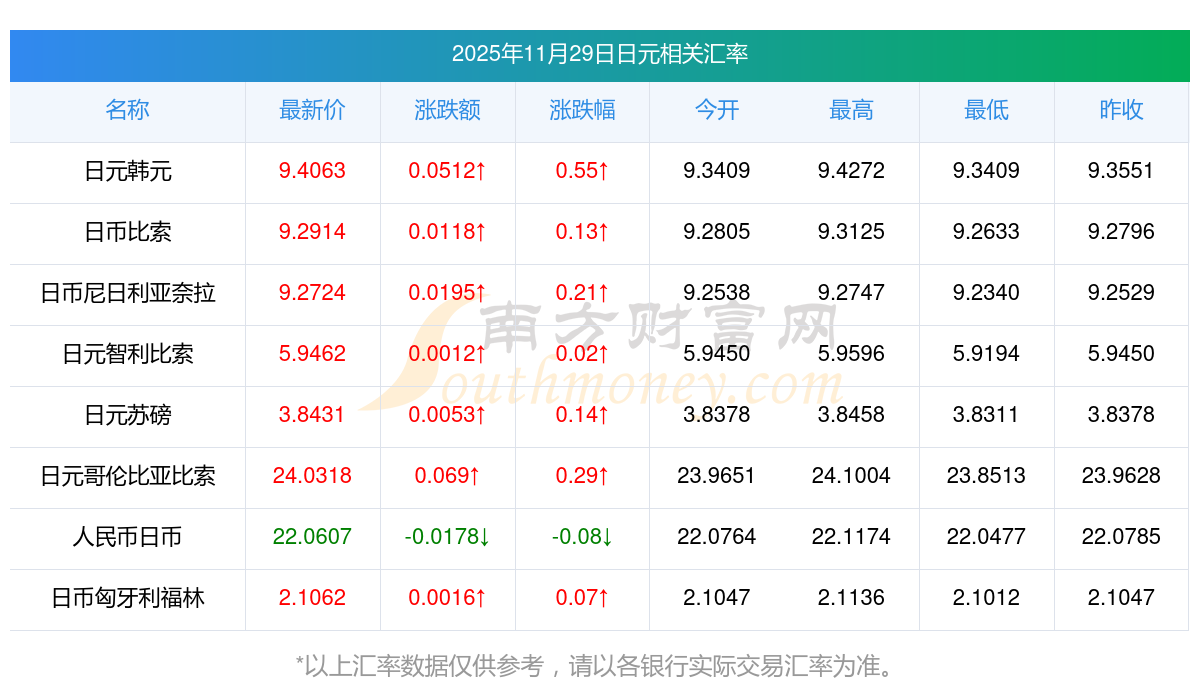 2025年11月29日日元相關(guān)匯率查詢(xún)