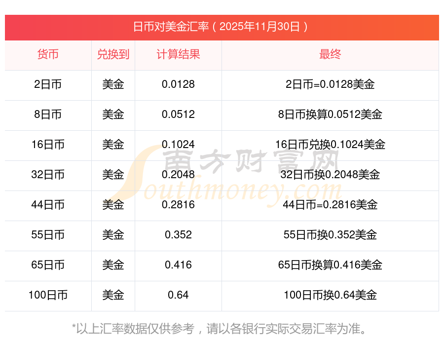 現(xiàn)在3650日元與美元的互換匯率是多少?11月30日