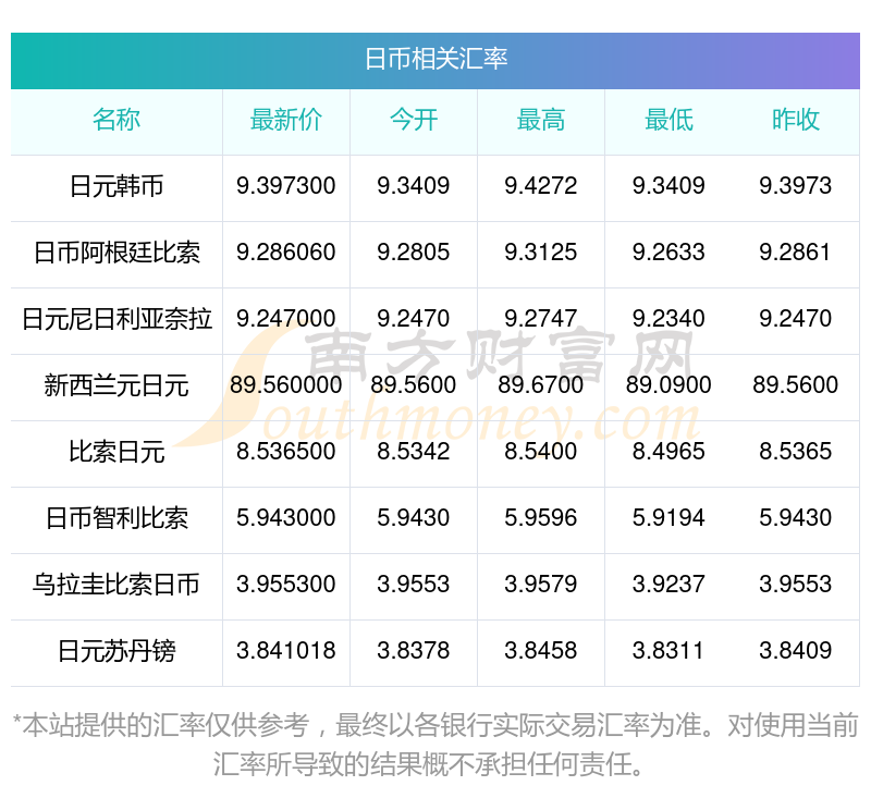 南方財富網(wǎng)為您提供日幣對挪威克朗匯率最新價格詳情。