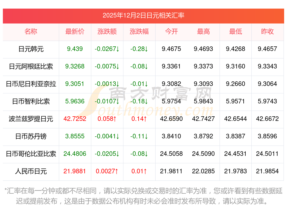 根據(jù)今天2025年12月2日匯率計算,JPY兌換TWD匯率最新價0.202100,今開價0.2021,昨收價0.2020,最高價0.2023,最低價0.2016。