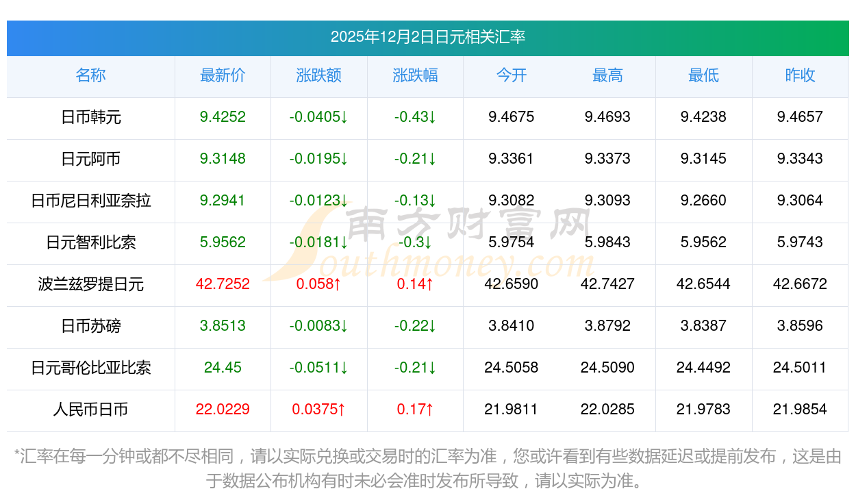 南方財富網(wǎng)為您提供日元對新加坡幣匯率最新價格詳情。