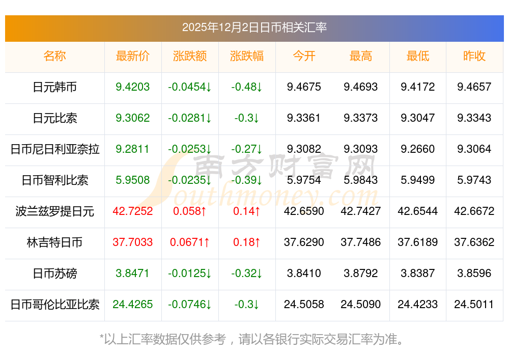 根據2025年12月2日匯率計算,JPY兌換MYR匯率最新價0.026489:今開價0.0266,昨收價0.0266,最高價0.0266,最低價0.0265。