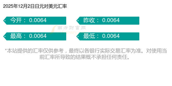 南方財富網(wǎng)為您提供日元對美元匯率最新價格詳情。