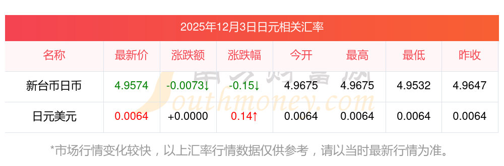 根據(jù)2025年12月3日匯率計(jì)算,JPY兌換USD匯率最新價(jià)0.006425: