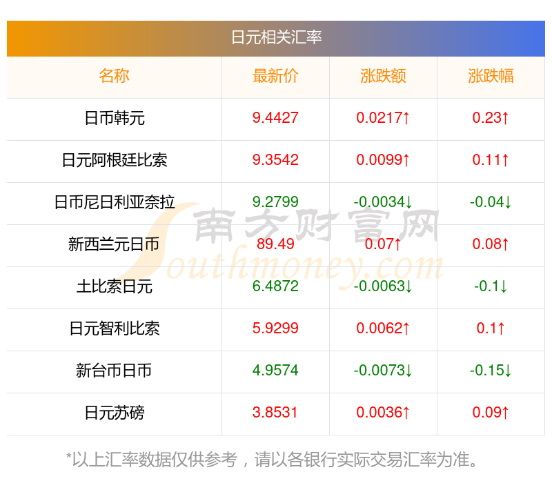 匯率在每一分鐘或都不盡相同,請以實(shí)際兌換或交易時的匯率為準(zhǔn),您或許看到有些數(shù)據(jù)延遲或提前發(fā)布,這是由于數(shù)據(jù)公布機(jī)構(gòu)有時未必會準(zhǔn)時發(fā)布所導(dǎo)致,請以實(shí)際為準(zhǔn)。