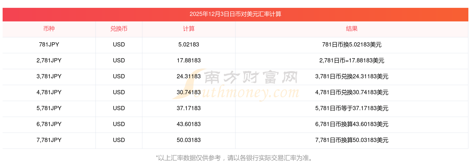 現(xiàn)在2780日元與美元的匯率是多少?2025/12/03