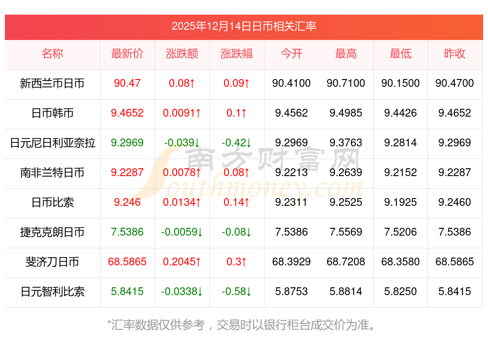 2025年12月14日日幣相關(guān)匯率查詢