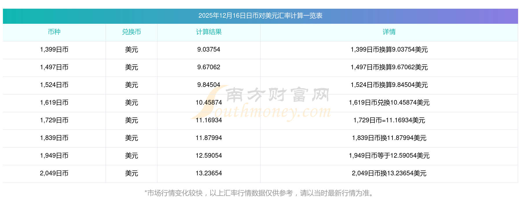 南方財(cái)富網(wǎng)為您提供日幣對(duì)美元匯率最新價(jià)格詳情。