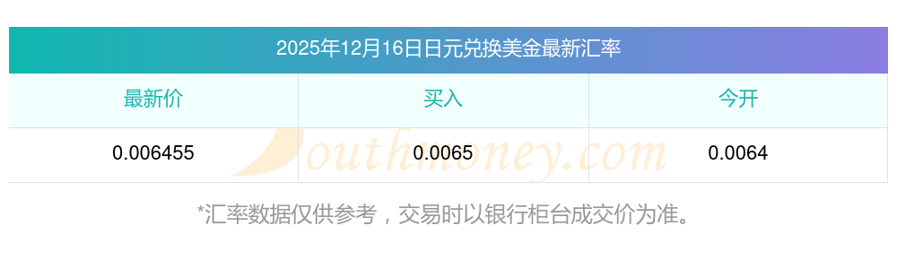 南方財(cái)富網(wǎng)為您提供日元對(duì)美金匯率最新價(jià)格詳情。