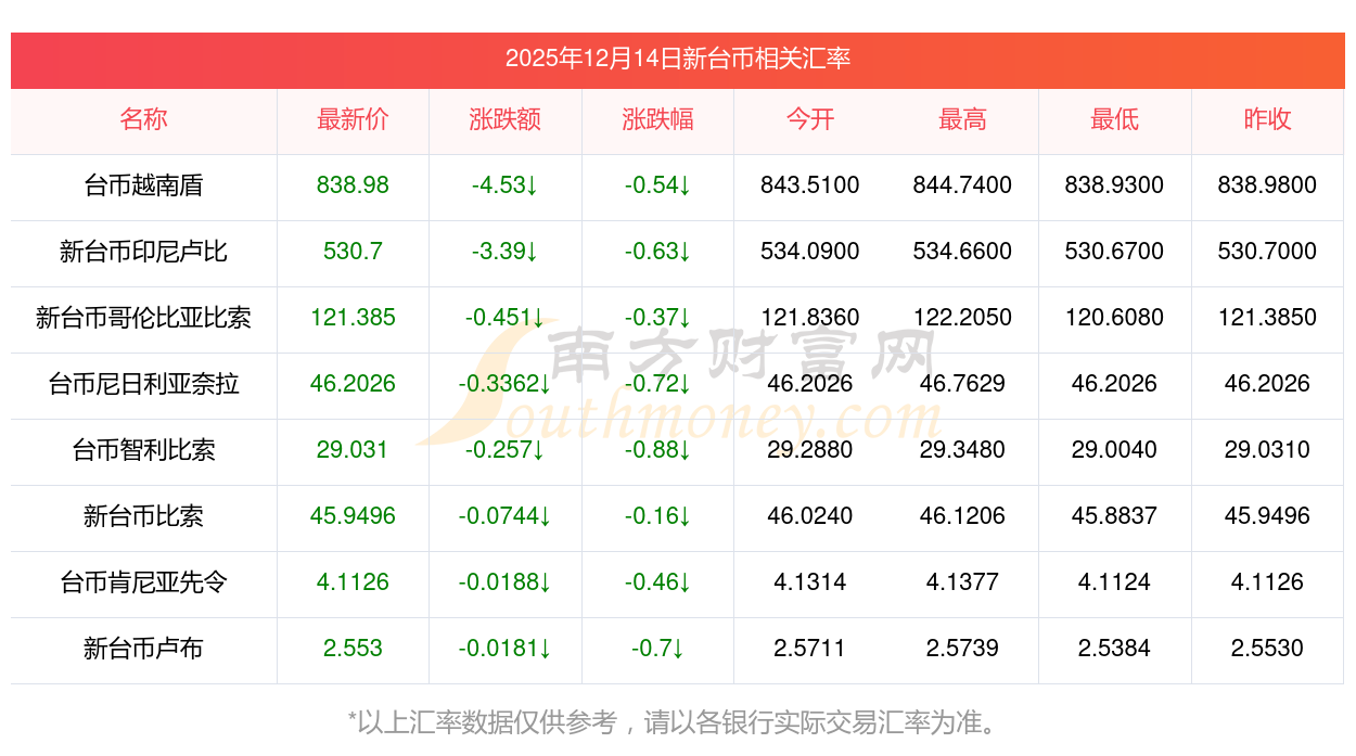 2025年12月14日新臺幣相關(guān)匯率查詢