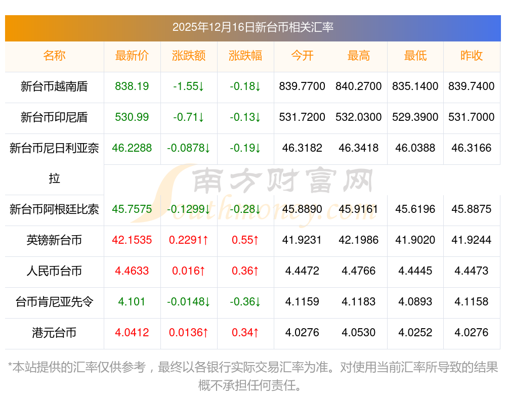 2025年12月16日新臺幣相關(guān)匯率查詢
