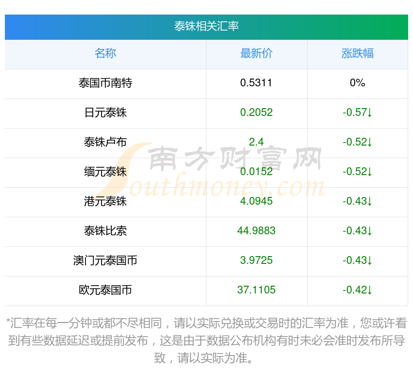 南方財富網(wǎng)為您提供泰銖對日幣匯率最新價格詳情。