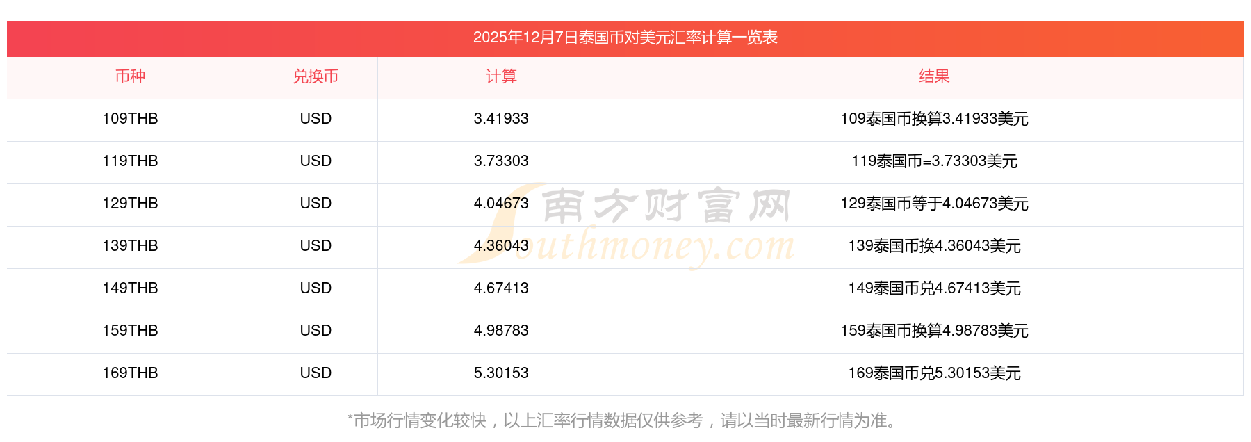 南方財(cái)富網(wǎng)為您提供泰國幣對美元匯率最新價(jià)格詳情。