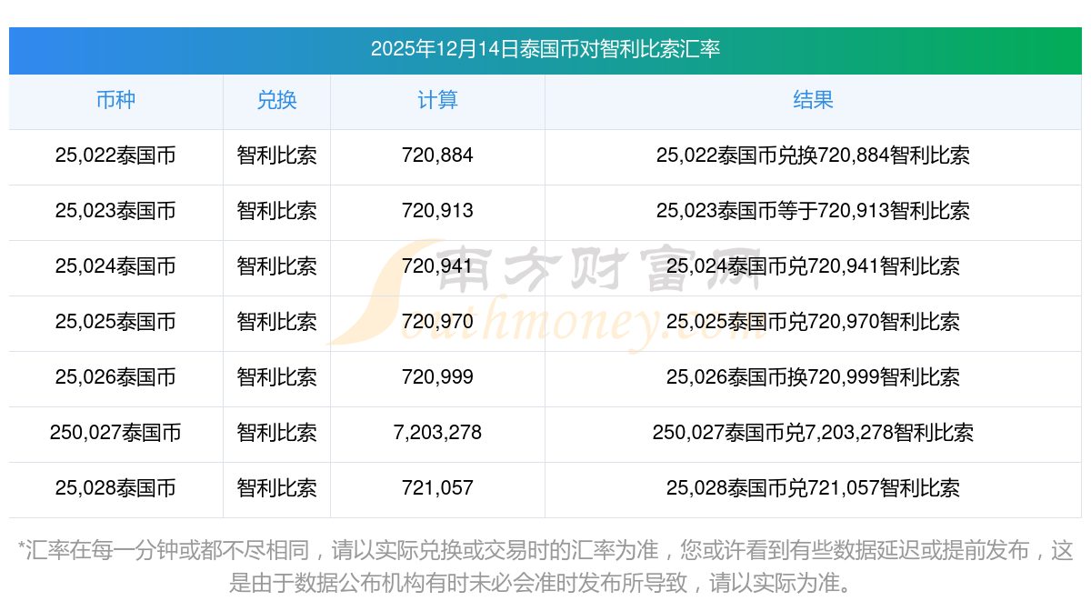 今日外匯調整 2025年12月14日今天1泰國幣與智利比索匯率計算表