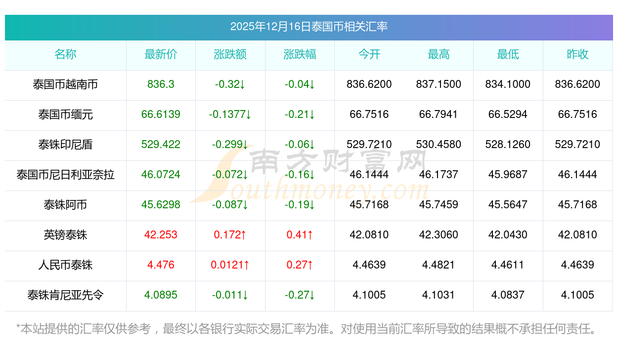 2025年12月16日泰國(guó)幣相關(guān)匯率查詢(xún)