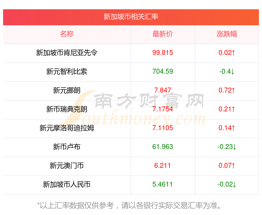 南方財(cái)富網(wǎng)為您提供新加坡幣對(duì)人民幣匯率最新價(jià)格詳情。