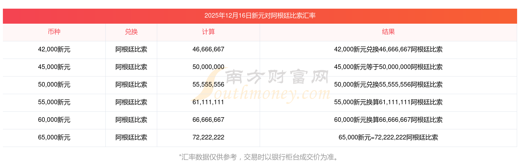 南方財(cái)富網(wǎng)為您提供新元對(duì)阿根廷比索匯率最新價(jià)格詳情。