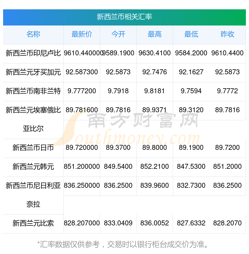 2025年12月7日新西蘭幣相關(guān)匯率查詢