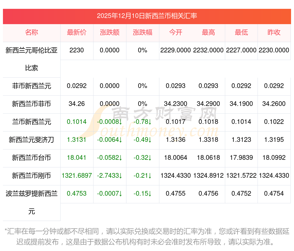 2025年12月10日新西蘭幣相關(guān)匯率查詢