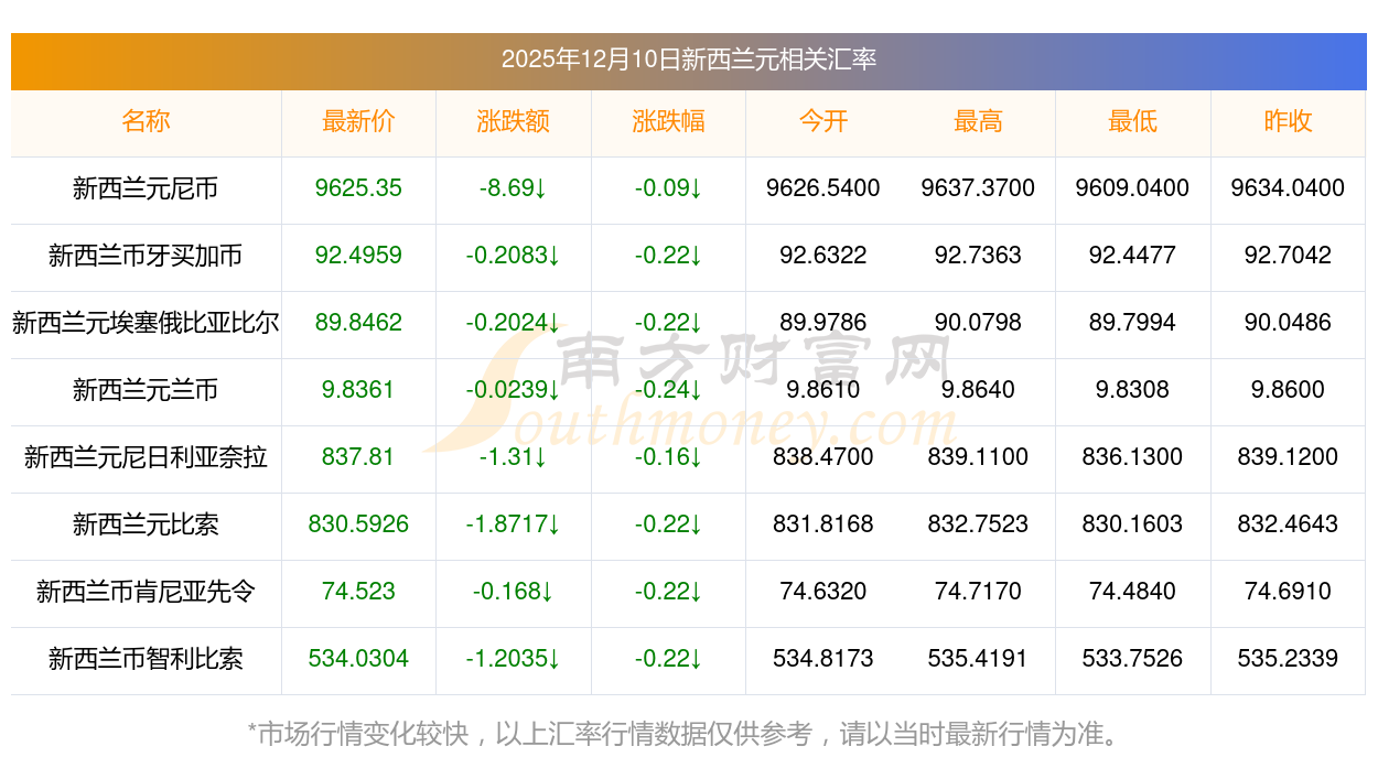 2025年12月10日新西蘭元相關(guān)匯率查詢