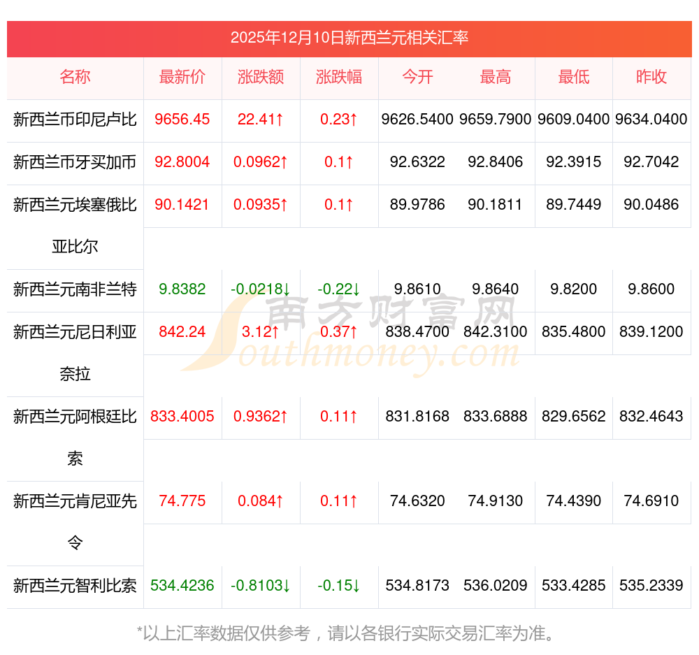 2025年12月10日新西蘭元相關(guān)匯率查詢