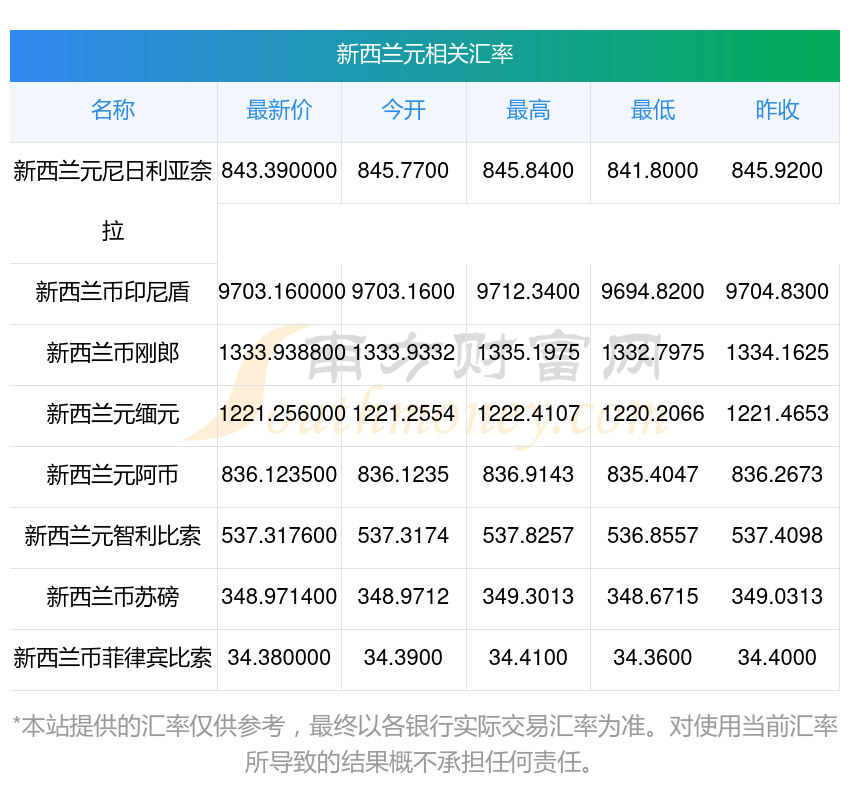 2025年12月11日新西蘭元相關(guān)匯率查詢