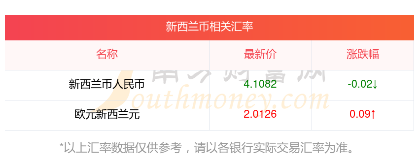 南方財(cái)富網(wǎng)為您提供新西蘭幣對人民幣匯率最新價(jià)格詳情。