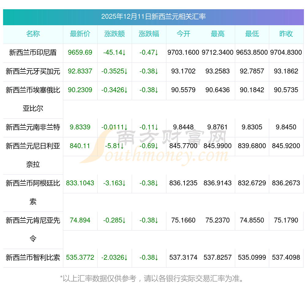 2025年12月11日新西蘭元相關(guān)匯率查詢