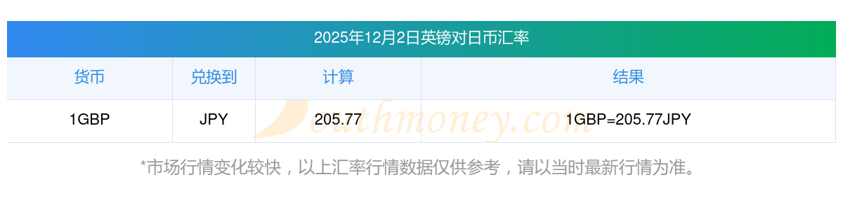 英鎊對(duì)日幣開盤價(jià)?今天140英鎊兌日幣匯率又是多少?2025年12月2日