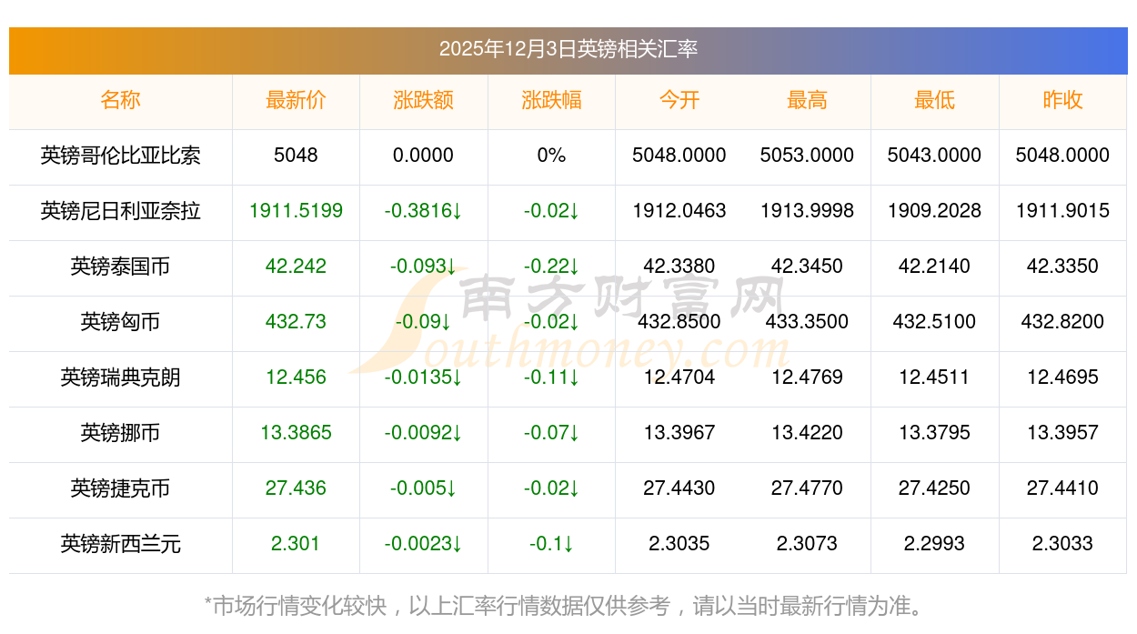 根據(jù)2025年12月3日匯率計(jì)算,GBP兌換JMD匯率最新價(jià)212.340000: