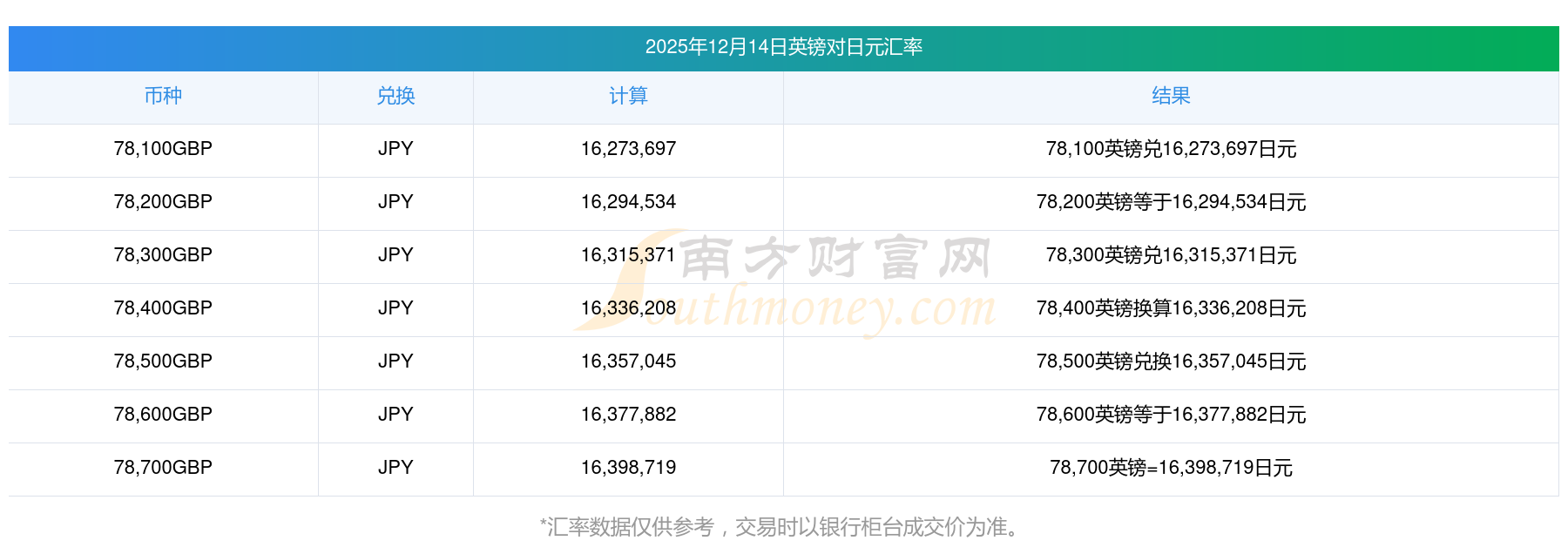 英鎊對日元開盤價?今天140英鎊兌日元匯率又是多少?2025/12/14