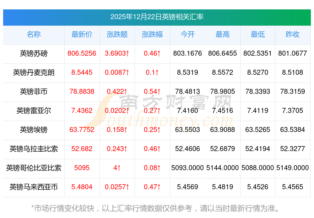 2025年12月22日最新消息,英鎊兌換臺幣最新匯率為42.373100,今開為42.1867,昨收為42.1346,最高為42.4195,最低為42.1535。