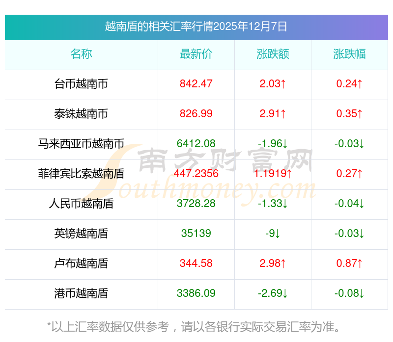 南方財(cái)富網(wǎng)為您提供越南盾對(duì)日幣匯率最新價(jià)格詳情。
