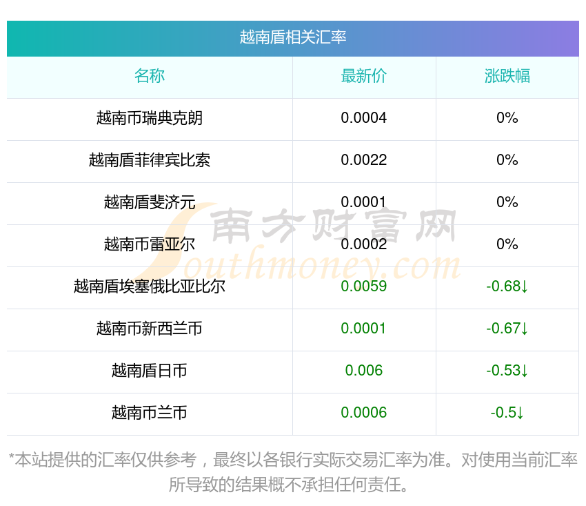 南方財(cái)富網(wǎng)為您提供越南盾對(duì)哥倫比亞比索匯率最新價(jià)格詳情。