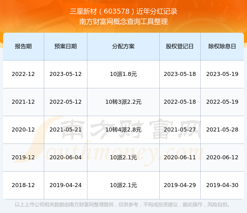三星新材最新一次公布的分紅方案:10派1.8元。
