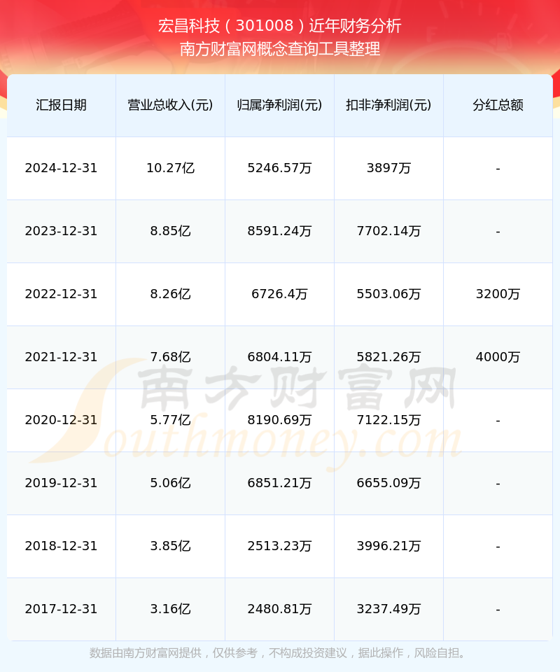 宏昌科技公司2024年實(shí)現(xiàn)營(yíng)收10.27億元,凈利潤(rùn)5246.57萬元,毛利率16.35%。