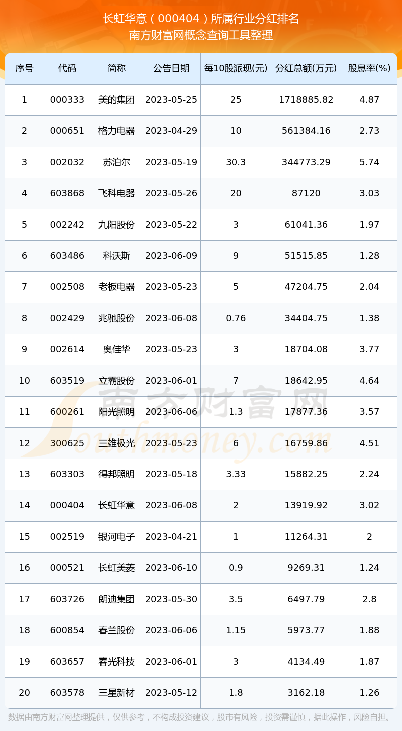 二、長(zhǎng)虹華意000404行業(yè)分紅排名