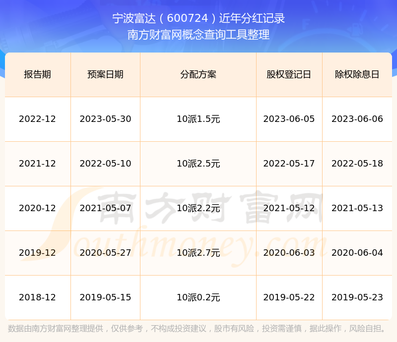 寧波富達(dá)最新一次公布的分紅方案:10派1.5元。
