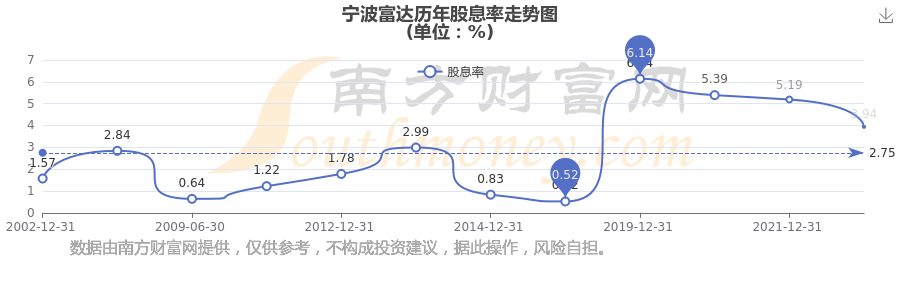 寧波富達(dá)歷年股息率走勢(shì)如下圖: