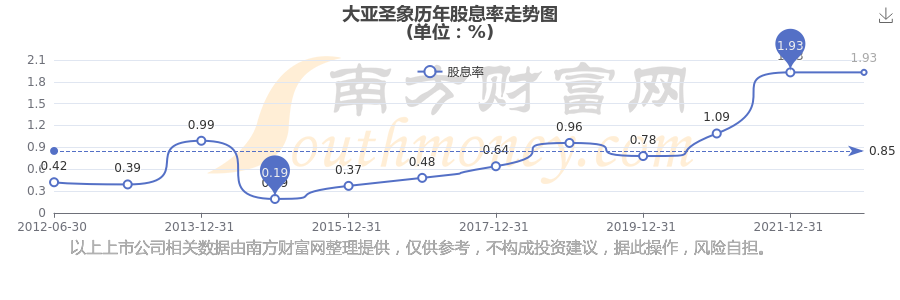 大亞圣象歷年股息率走勢(shì)如下圖: