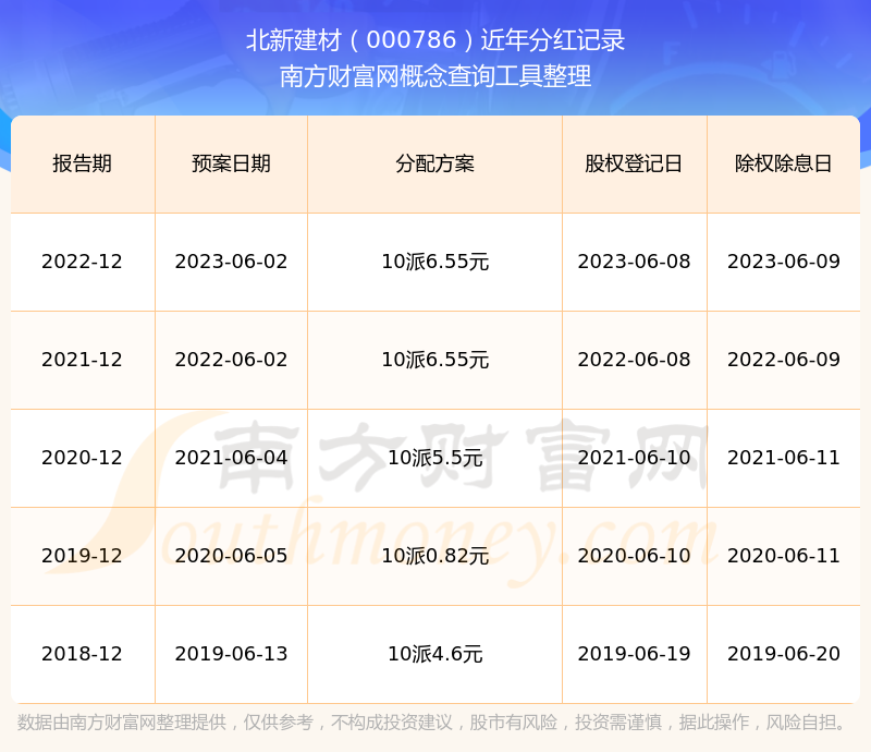 北新建材最新一次公布的分紅方案:10派6.55元。