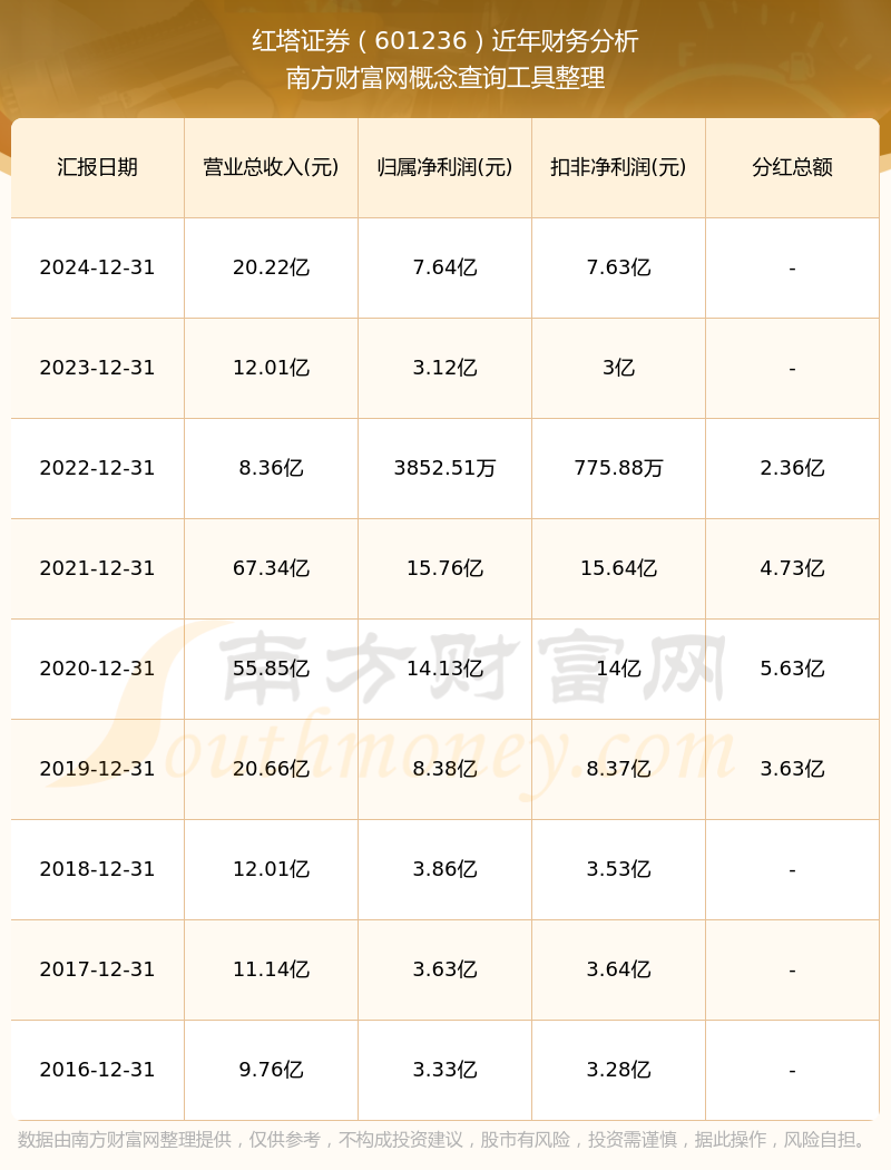 2024年紅塔證券總營收20.22億,同比增長68.36%;凈利潤7.64億。
