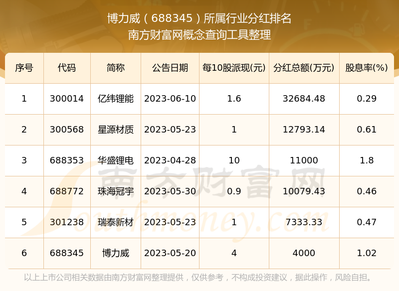 二、博力威688345行業(yè)分紅排名