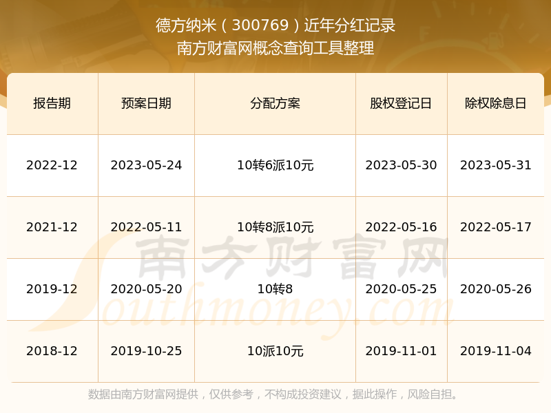 德方納米最新一次公布的分紅方案:10轉(zhuǎn)6派10元。
