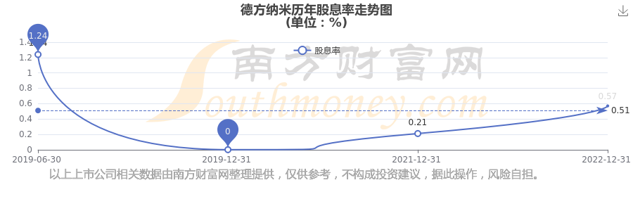 德方納米歷年股息率走勢如下圖: