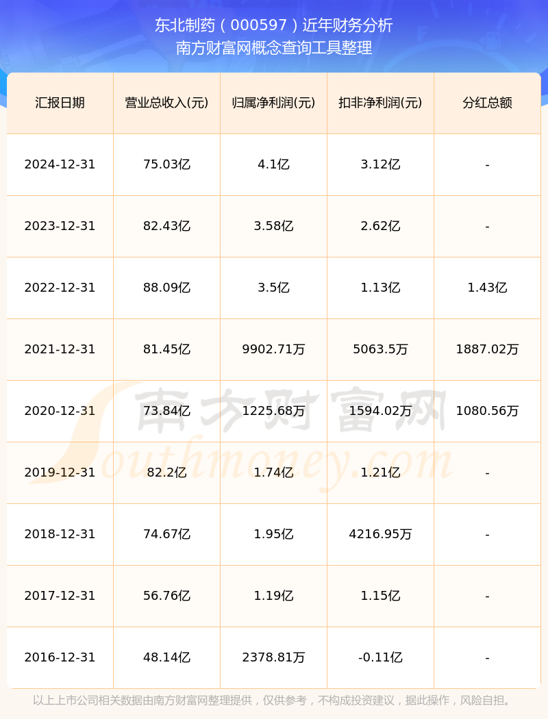 近年?yáng)|北制藥分紅派息情況如下表所示:
